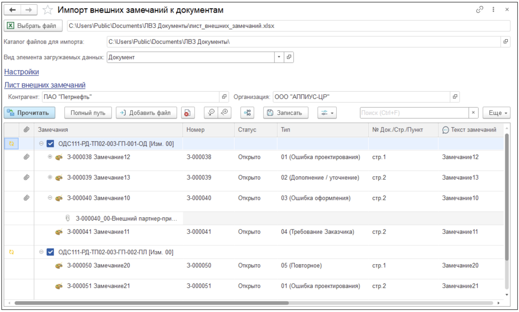 In the new version of Appius-PLM TDO, the module for importing external comments on documentation has been updated to match the updated form specified in the project documentation management procedure.