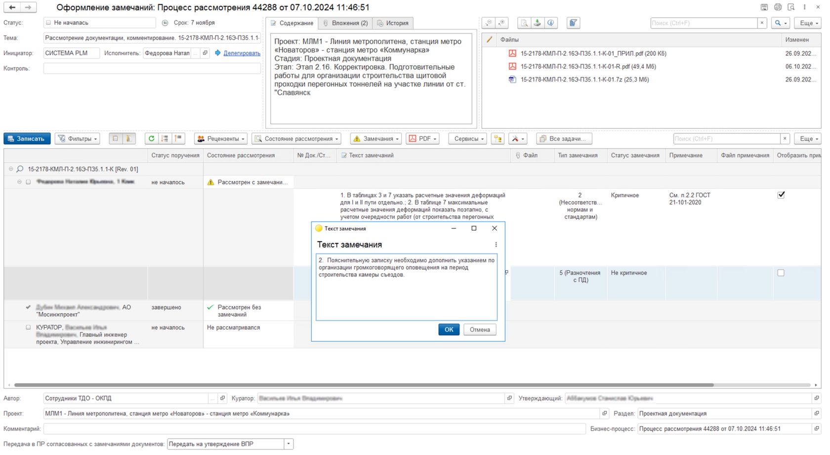 На сегодняшний день все этапы обработки технической документации — включая рассмотрение, согласование, утверждение и выдачу в производство работ — полностью переведены в систему «Appius-PLM ТДО».