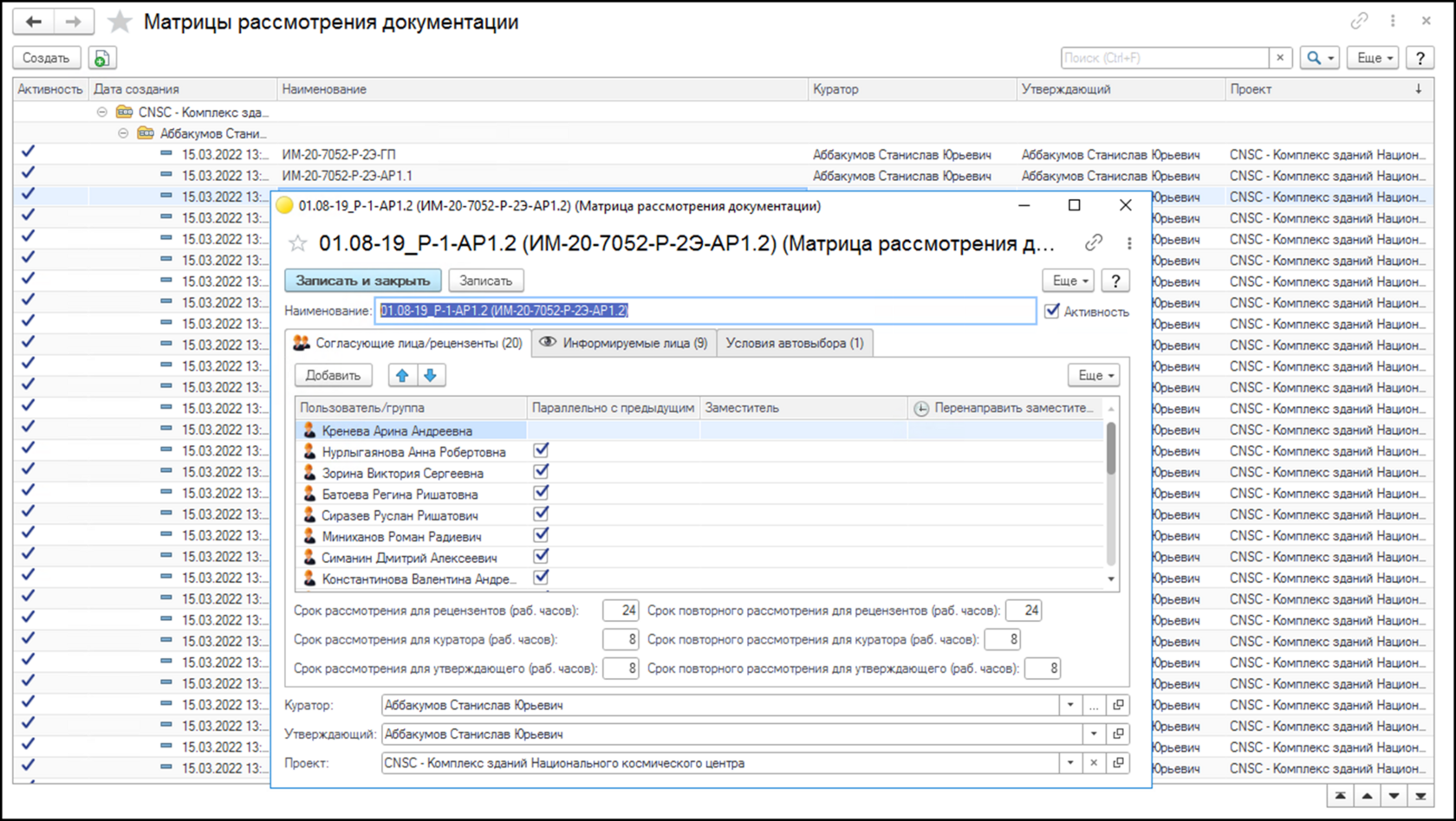Введена матрица рассылки документации с регламентированными cроками и распределением ролей