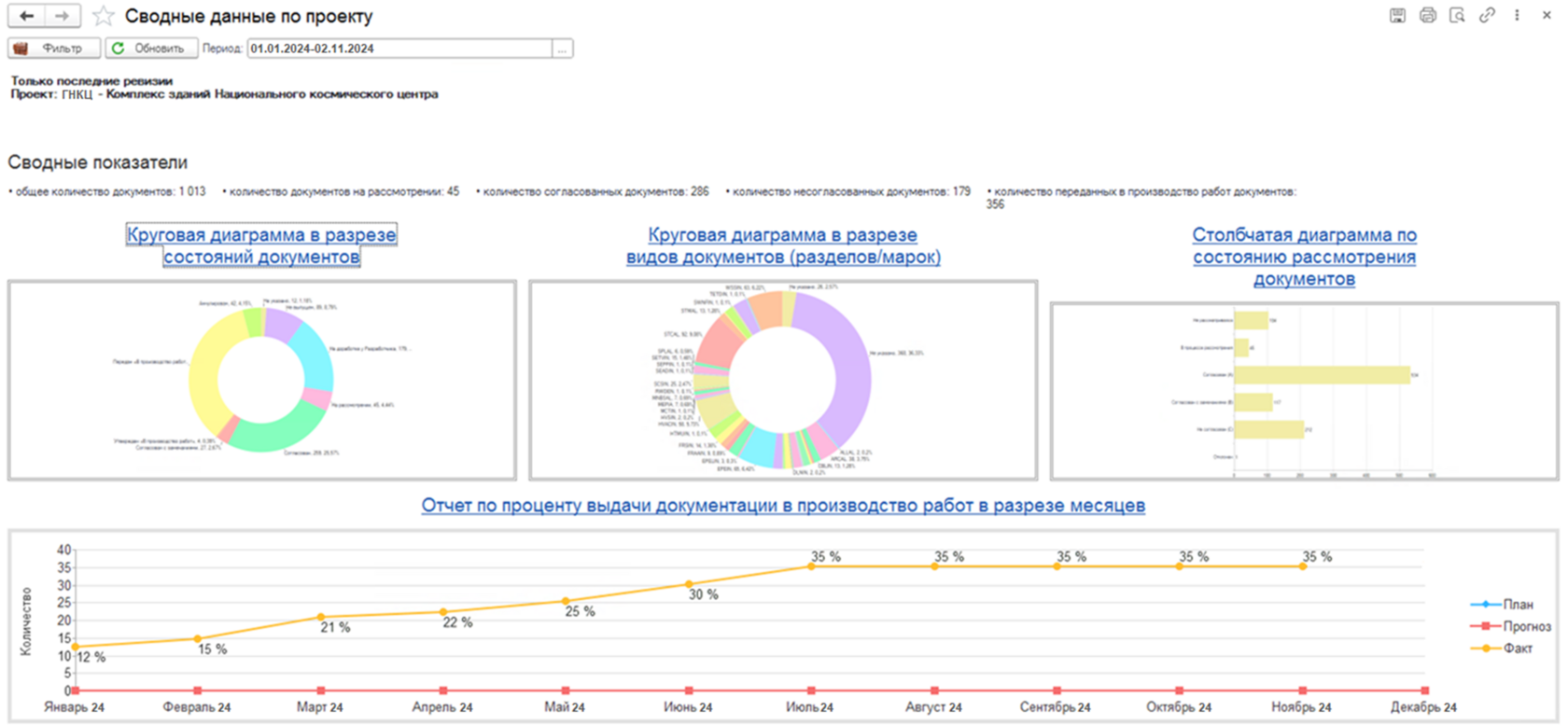 Пользователи с соответствующими правами доступа теперь могут оперативно отслеживать статус документации по активным проектам через встроенный модуль отчетности, что позволяет исключить трудоёмкие ручные операции по её поиску и проверке.