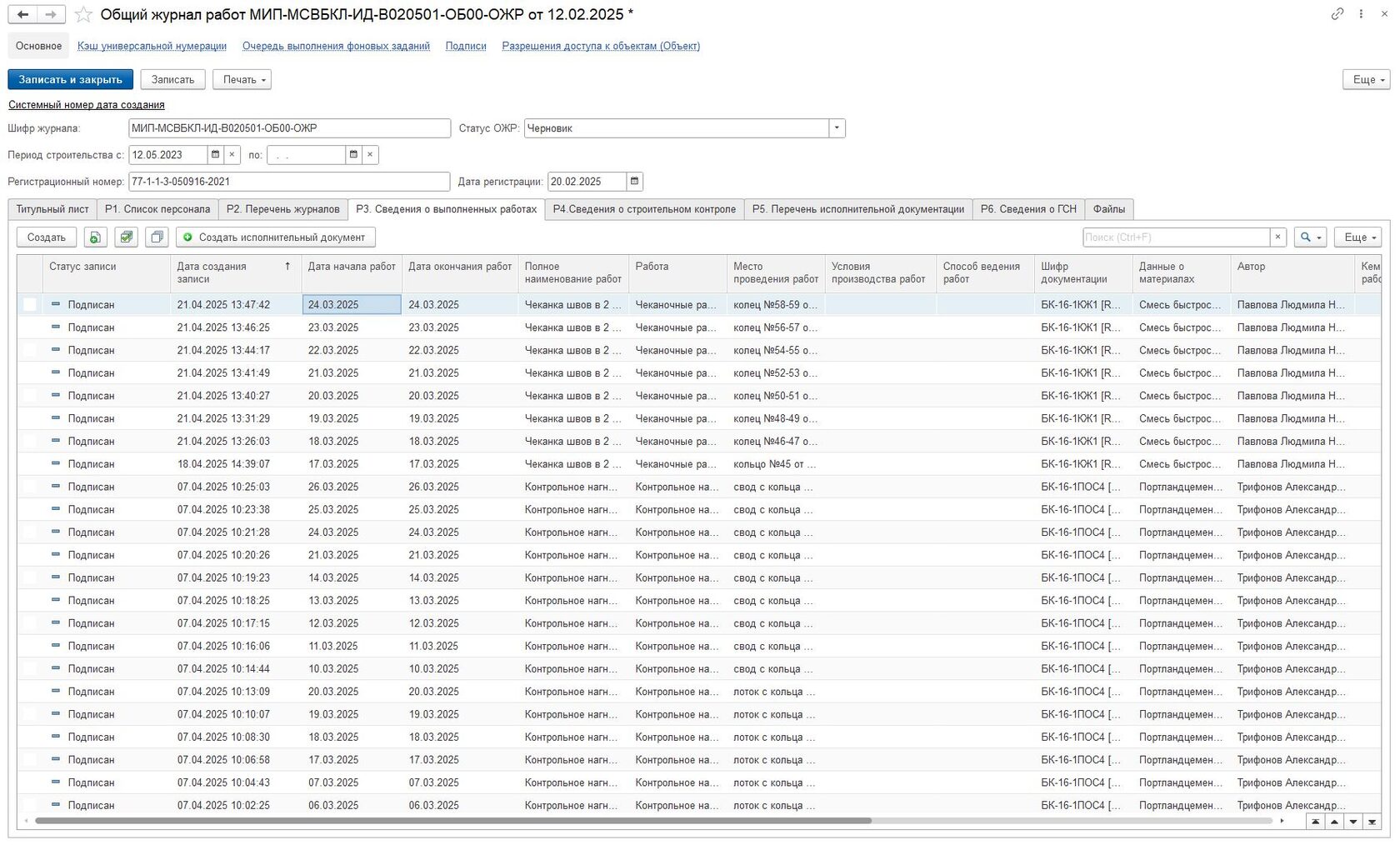 Система обеспечивает создание исполнительной документации, включая специальные журналы выполненных работ, в цифровом формате с последующим экспортом в XML-формат, соответствующем требованиям Минстроя России.