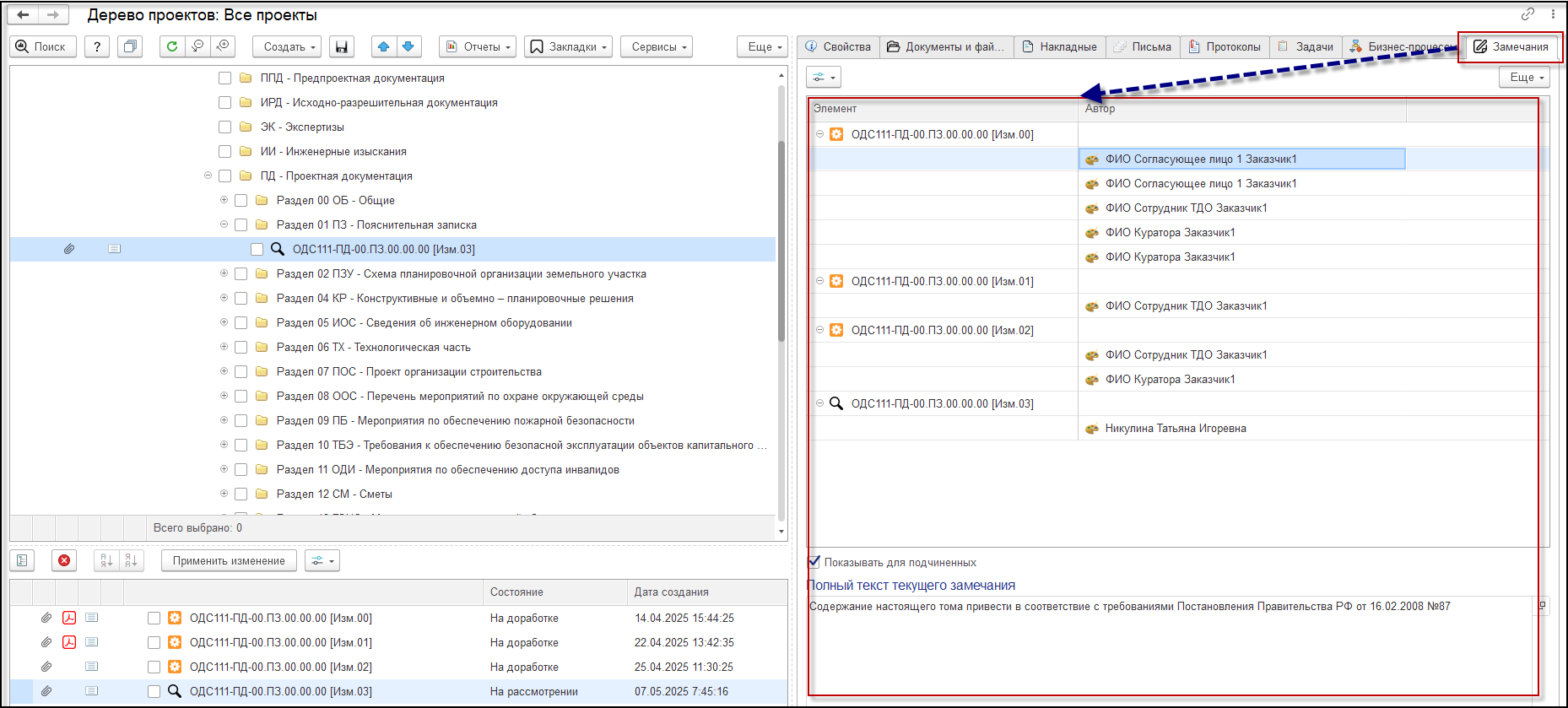 - добавлена новая закладка "Замечания", отображающая информацию по замечаниям в рамках выбранного элемента дерева;
