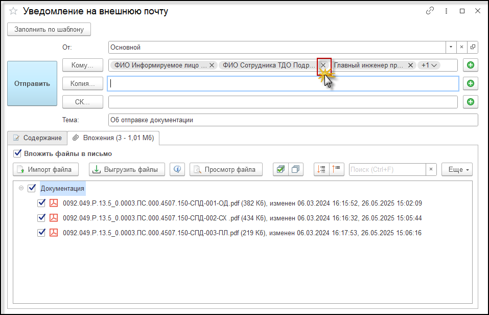 В интерфейс модуля отправки уведомлений на внешнюю почту добавлена возможность удалять получателей уведомлений без открытия дополнительной формы.