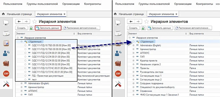 При обновлении справочника «Иерархии элементов» теперь происходит очистка удалённых элементов.