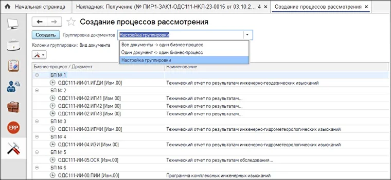 - Добавлена обработка для создания процессов рассмотрения с настраиваемыми группировками по набору свойств элементов документации.