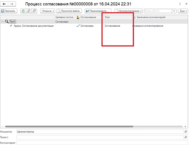 На форме бизнес-процесса согласования добавлена информация об этапе задачи.