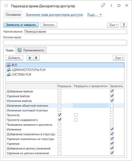 Объектная политика назначается элементу при его создании и может наследоваться от родителя элемента его потомкам. Групповая политика на элементы и их параметры назначается автоматически по средствам бизнес-процесса согласования.